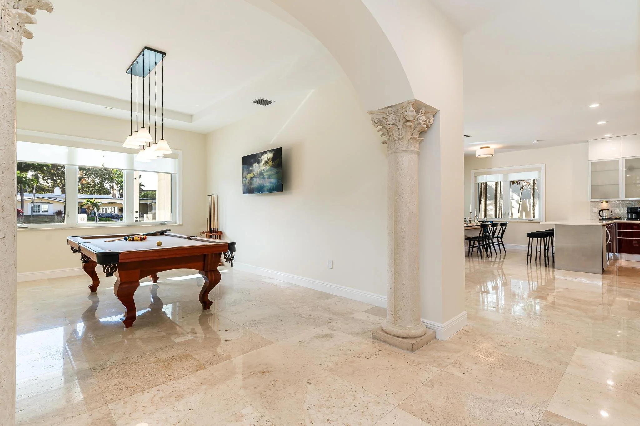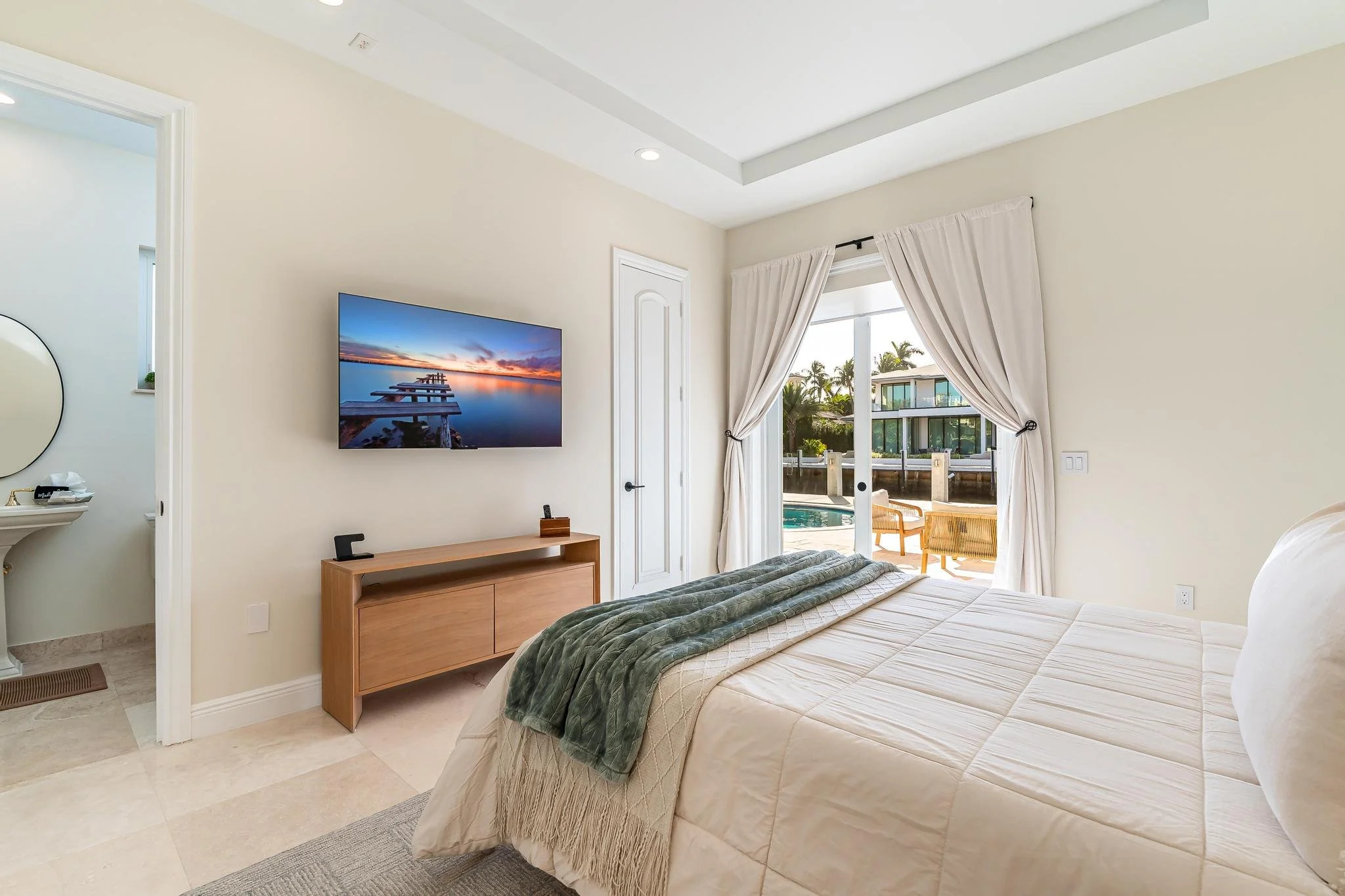 The fully equipped kitchen offers everything you need to dine in with ease — from morning coffee on the patio to gourmet dinners at home. With high-end appliances, ample space, and elegant finishes, it’s perfect for both casual meals and special occasions.